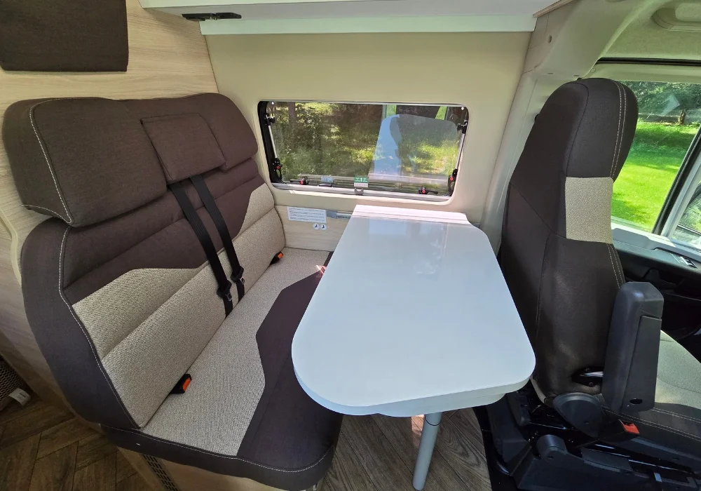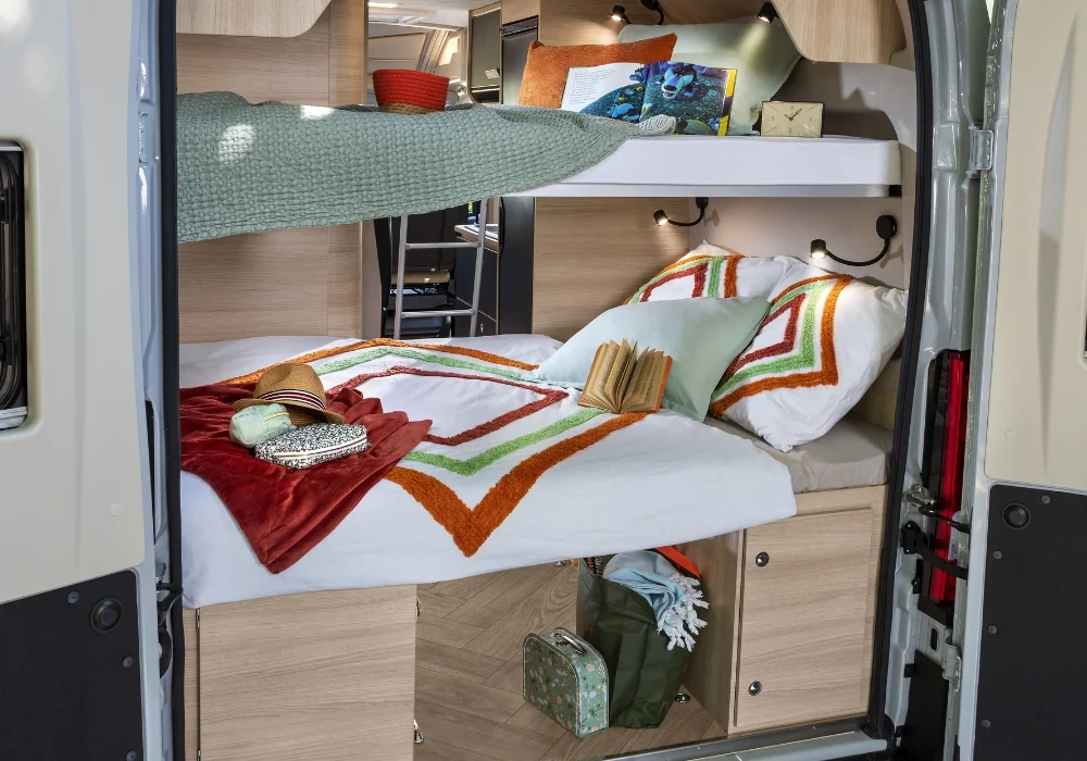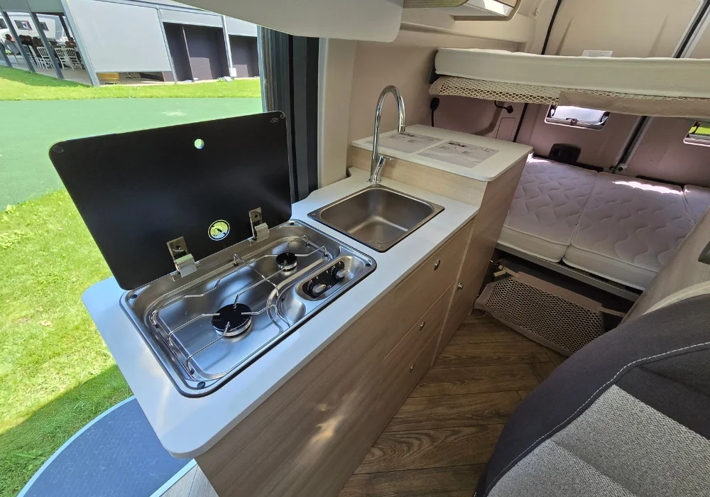Challenger V114 Max Ви обещава незабравими приключения при пътуване със семейството! Този компактен кемпер ван е дълъг 5,99 метра и предлага достатъчно място за до 4+1 души. Особено внимание заслужава тоалетната с прозорец, която създава приятна атмосфера и постоянна свежест. Зоната за спане отзад отгоре също е истински акцент и предлага място за комфортен нощен сън.