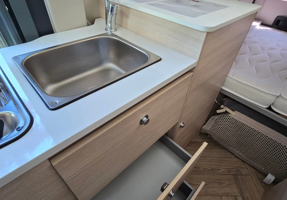 Изолирана външна система за вода и отопление, 5500W нагревател за гориво, изолиран капак на арматурното табло, термоизолирани завеси за прозорците? щора за лодка в динета, изолиран и отопляем резервоар за отпадни води, изолиран изскачащ покрив * | * Ако е избрана опцията за изскачащ покрив